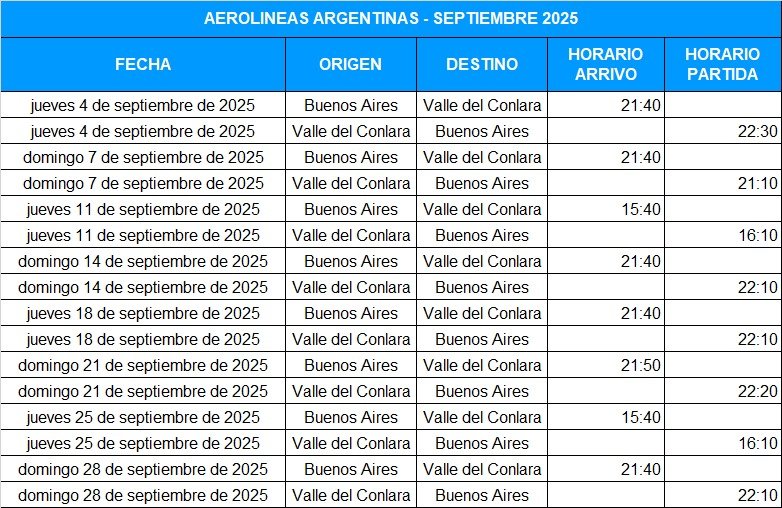 EL AEROPUERTO DEL VALLE DEL CONLARA PUBLICÓ SU CRONOGRAMA DE VUELOS DE SEPTIEMBRE