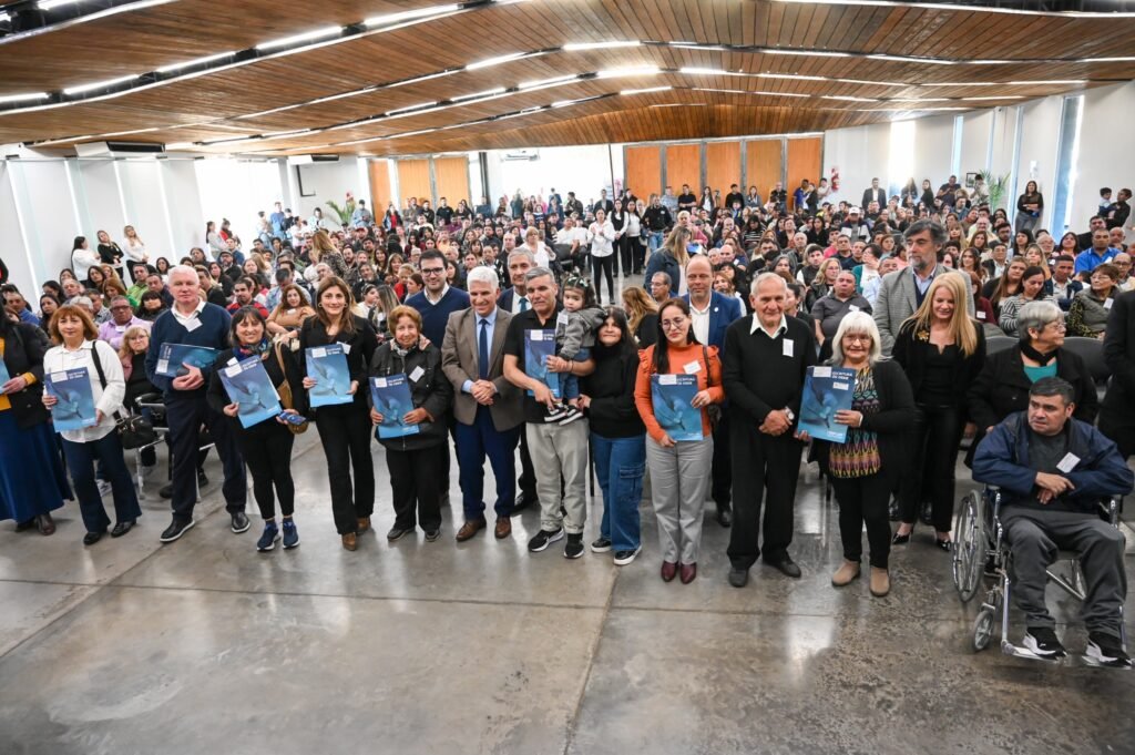 El gobernador Claudio Poggi presidió un nuevo acto de ‘Escriturá tu Casa’ y ´Protegé tu Casa’ en el salón Malvinas. El Mandatario otorgó la documentación a familias de Tilisarao, La Punta, Juana Koslay, Villa Mercedes y ciudad de San Luis. “La escritura es seguridad jurídica y tranquilidad familiar sobre la vivienda propia”, expresó.