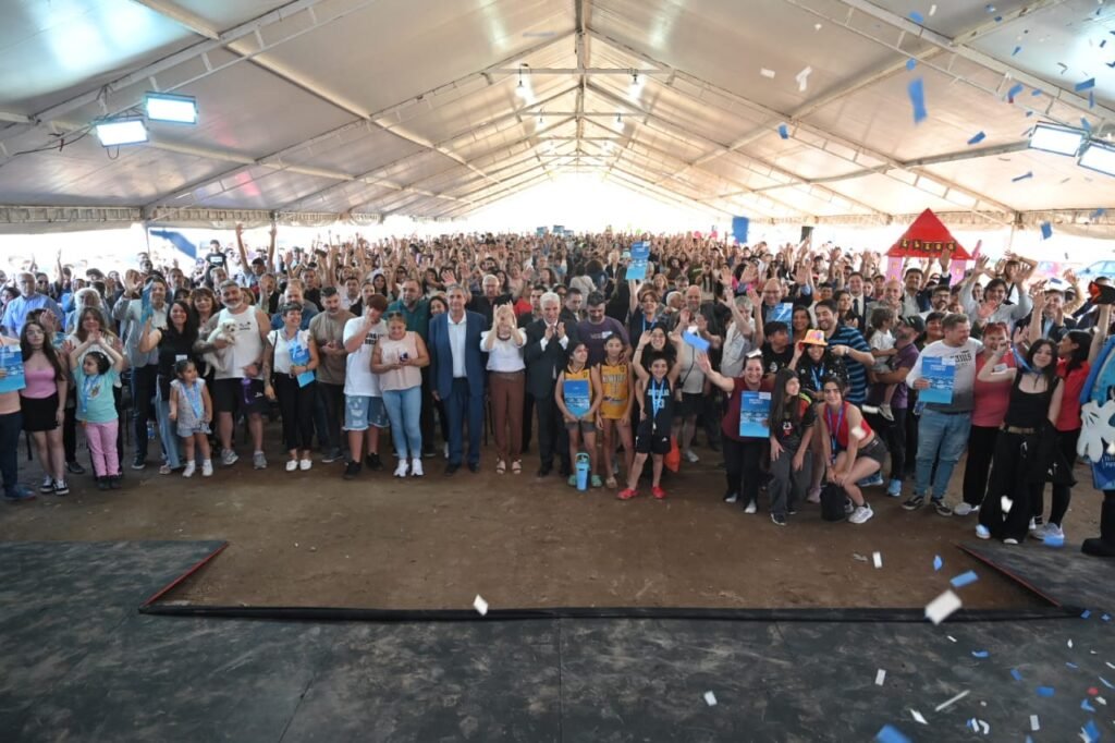 Frente al complejo urbanístico La Ribera, el barrio más nuevo de la ciudad, el paisaje se pobló de emoción y movimiento: camionetas con muebles, colchones y cajas aguardaban el final del acto para comenzar la mudanza. No era una ceremonia más: era el cierre de una espera que, para muchos, había durado más de una década.