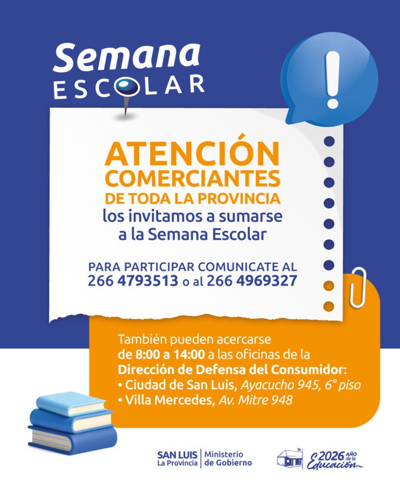 La dirección de Defensa del Consumidor y Lealtad Comercial lanzó una convocatoria abierta para que comercios de diversos rubros participen de la Semana Escolar, una iniciativa destinada a acompañar a las familias en la preparación del ciclo lectivo 2026.