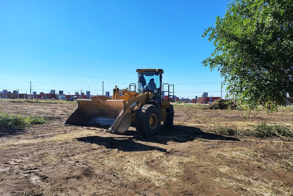 Desde la dirección de Obras de Arquitectura y Viviendas informaron que en el predio destinado al desarrollo habitacional se llevan adelante trabajos preliminares de preparación y acondicionamiento del terreno, con la intervención de maquinaria vial pesada. Las tareas permiten ordenar la superficie, mejorar las condiciones del suelo y adecuar el espacio para las próximas etapas de obra.